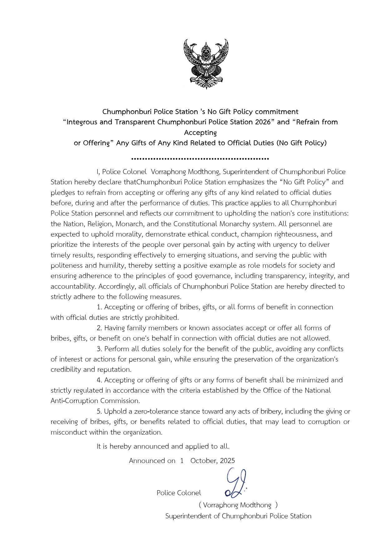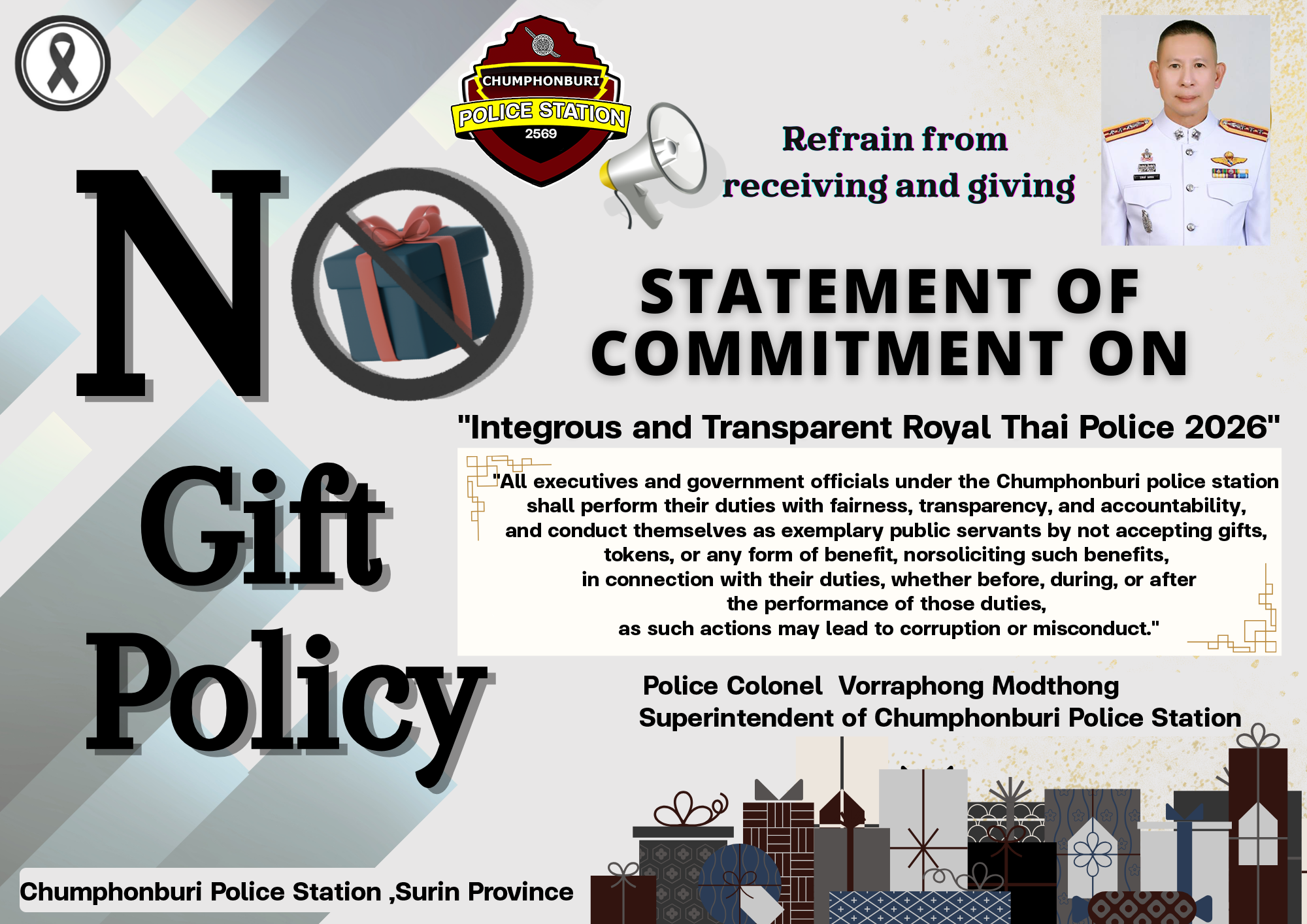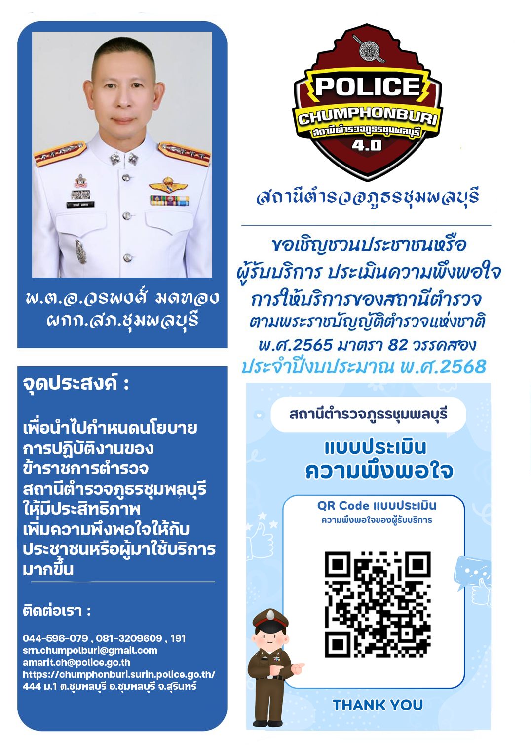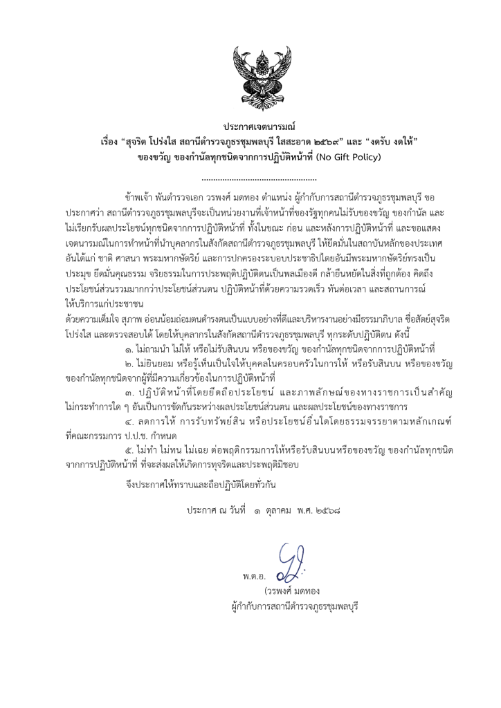 พ.ต.อ.วรพงศ์ มดทอง ผกก.สภ.ชุมพลบุรี ประชุมชี้แจงเสริมสร้างความรู้ความเข้าใจให้เจ้าหน้าที่ในการจัดการทรัพย์สินของราชการ ของบริจาค และการจัดเก็บของกลางเพื่อป้องกันการทุจริตภายในหน่วยงาน พร้อมด้วยการดำเนินปรับปรุงสถานที่จอดรถของกลางในคดี