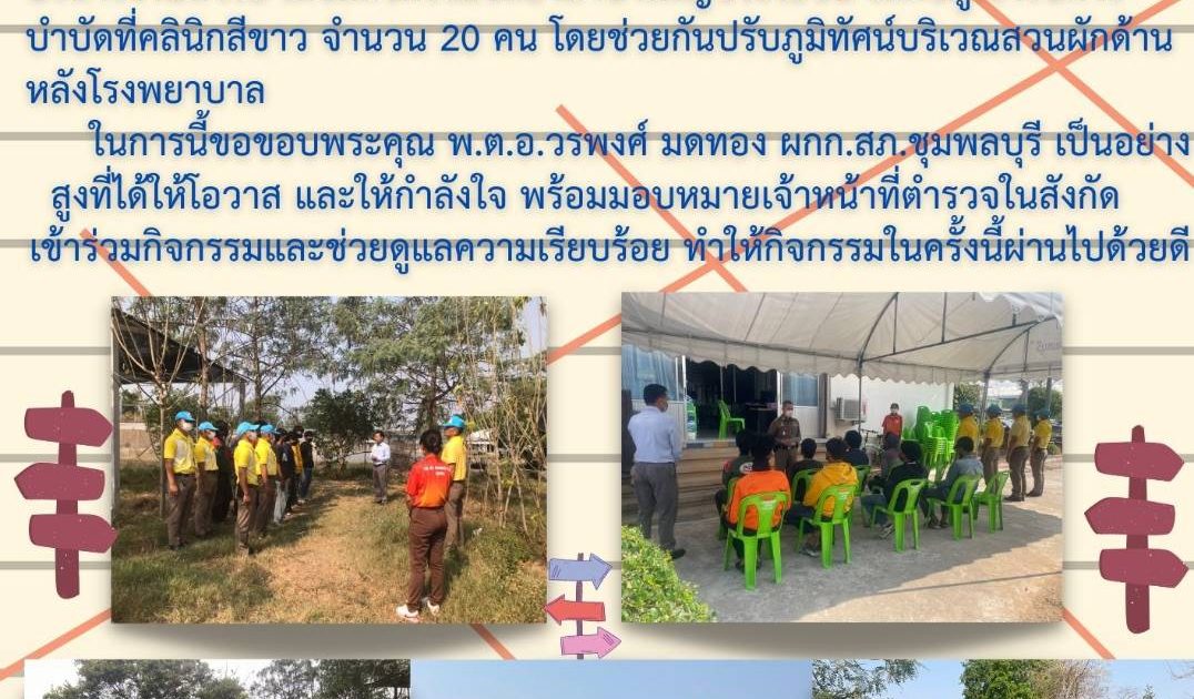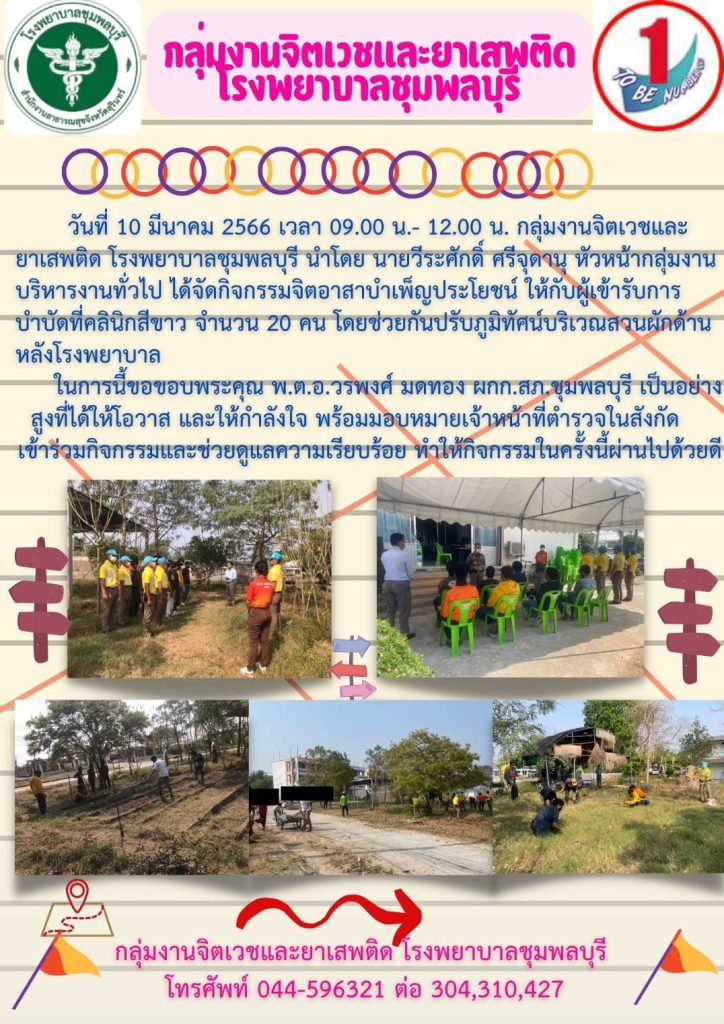 วันที่ 10 มี.ค. 2566 เวลา 09.00 น.-12.00 น. พ.ต.อ.วรพงศ์ มดทอง ผกก.สภ.ชุมพลบุรี พ.ต.ท.สุชน สุวรรณชาตรี สวป.สภ.ชุมพลบุรี พร้อมด้วย เจ้าหน้าที่ตำรวจจิตอาสา สภ.ชุมพลบุรี เจ้าหน้าที่ รพ.ชุมพลบุรี และกลุ่มเยาวชนฯ ร่วมกันปรับภูมิทัศน์พัฒนาศูนย์เกษตรของ รพ.ชุมพลบุรี ระหว่างปฏิบัติได้รับความร่วมมือจากทุกฝ่ายเป็นอย่างดี