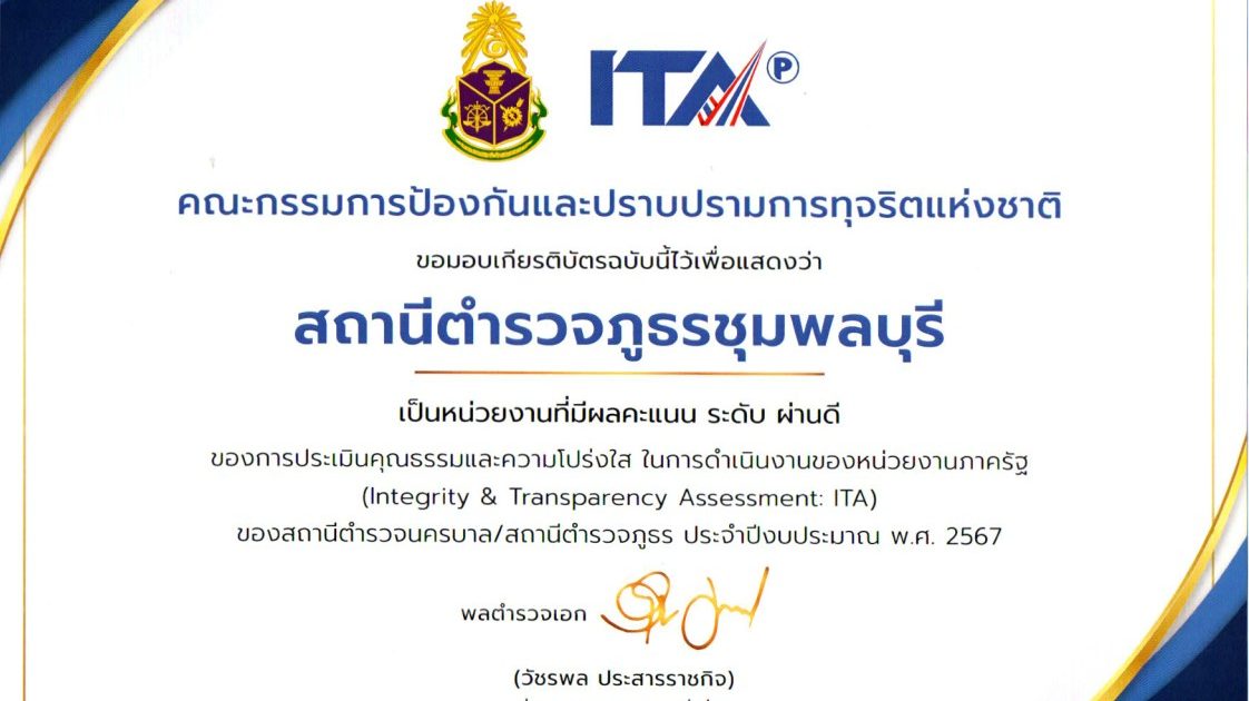 สถานีตำรวจภูธรชุมพลบุรีได้รับรางวัล ผ่านดี ในการประเมินคุณธรรมและความโปร่งใสฯ ประจำปี พ.ศ.2567 1 ตุลาคม 2024 โดย chumphonburi_amarit / ไม่มีหมวดหมู่,การขับเคลื่อน การประเมิน ITA ประจำปีงบประมาณ 2568,ข่าวประชาสัมพันธ์