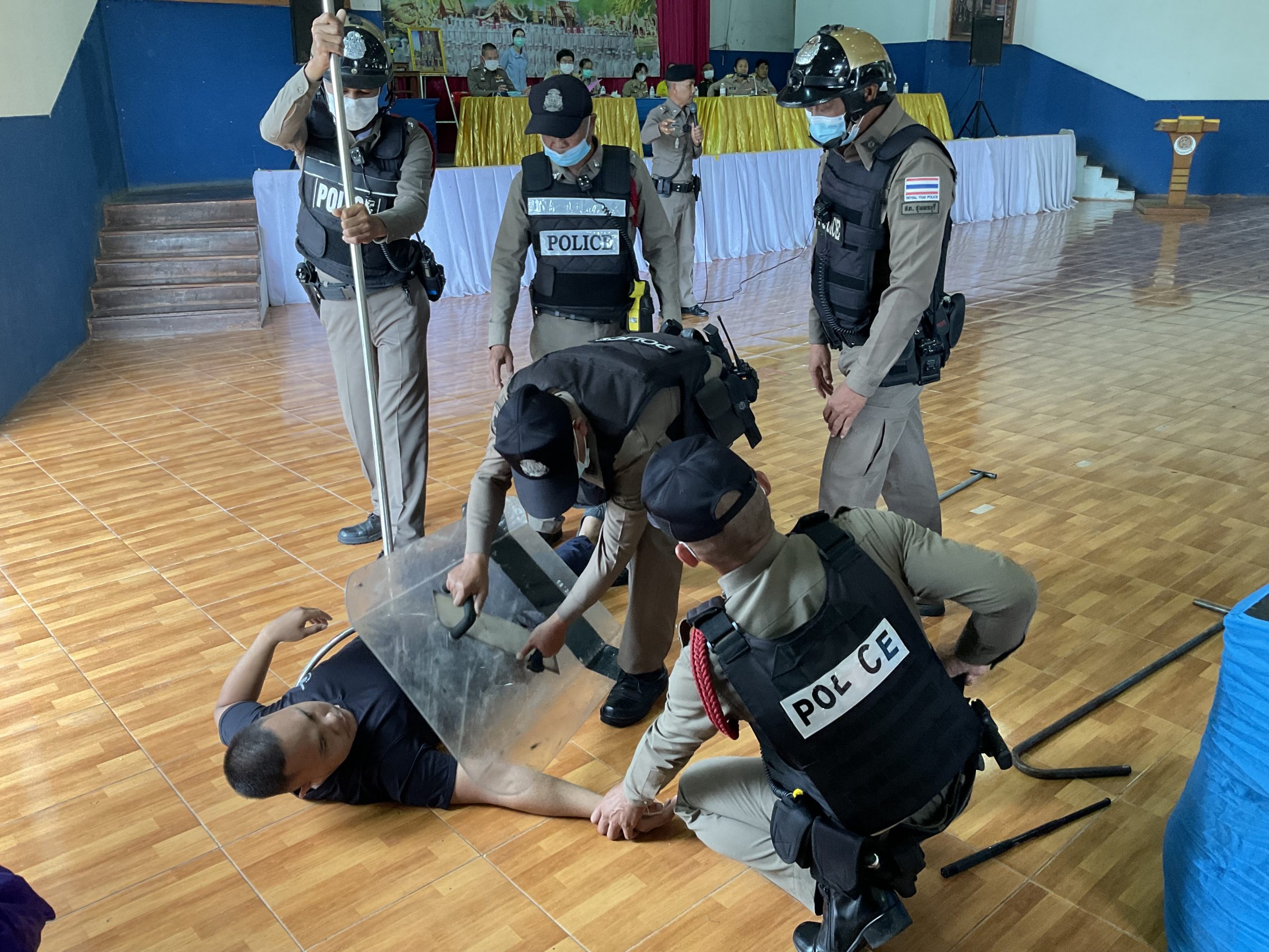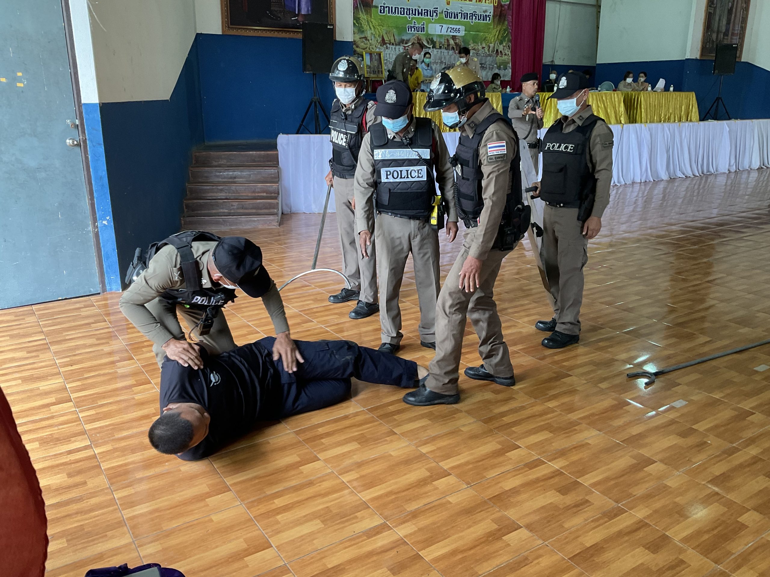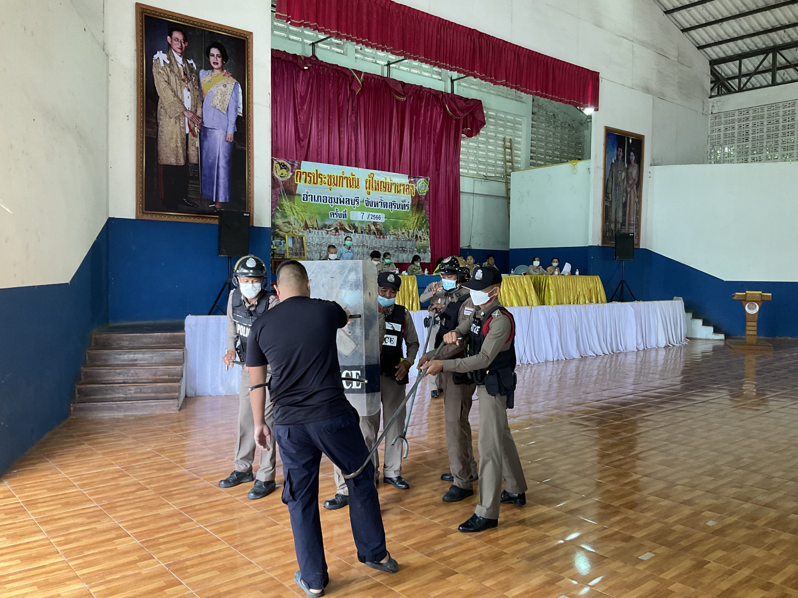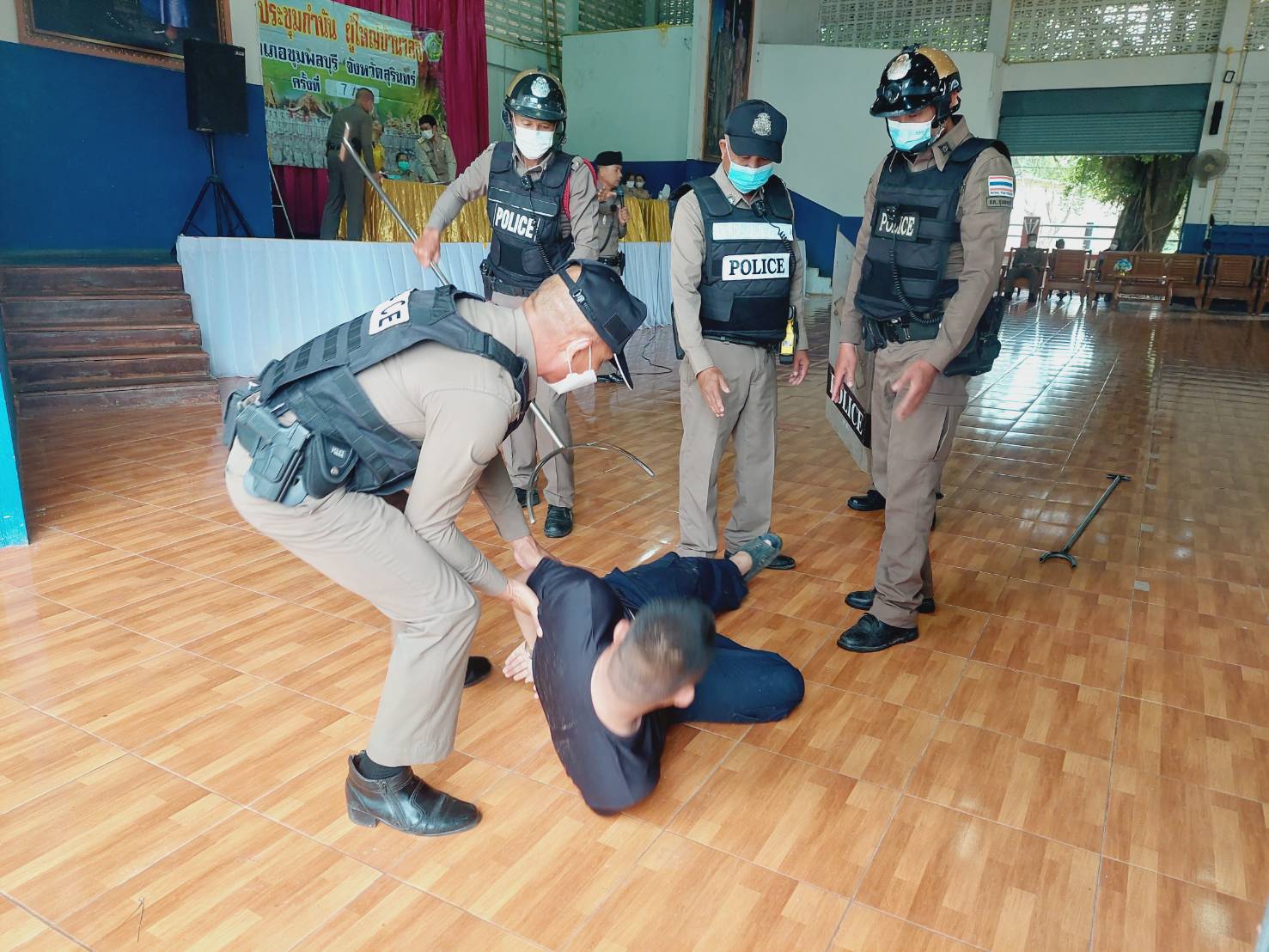 สาธิตวิธีการระงับเหตุบุคคลคลุ้มคลั่ง โดยใช้ไม้ง่าม