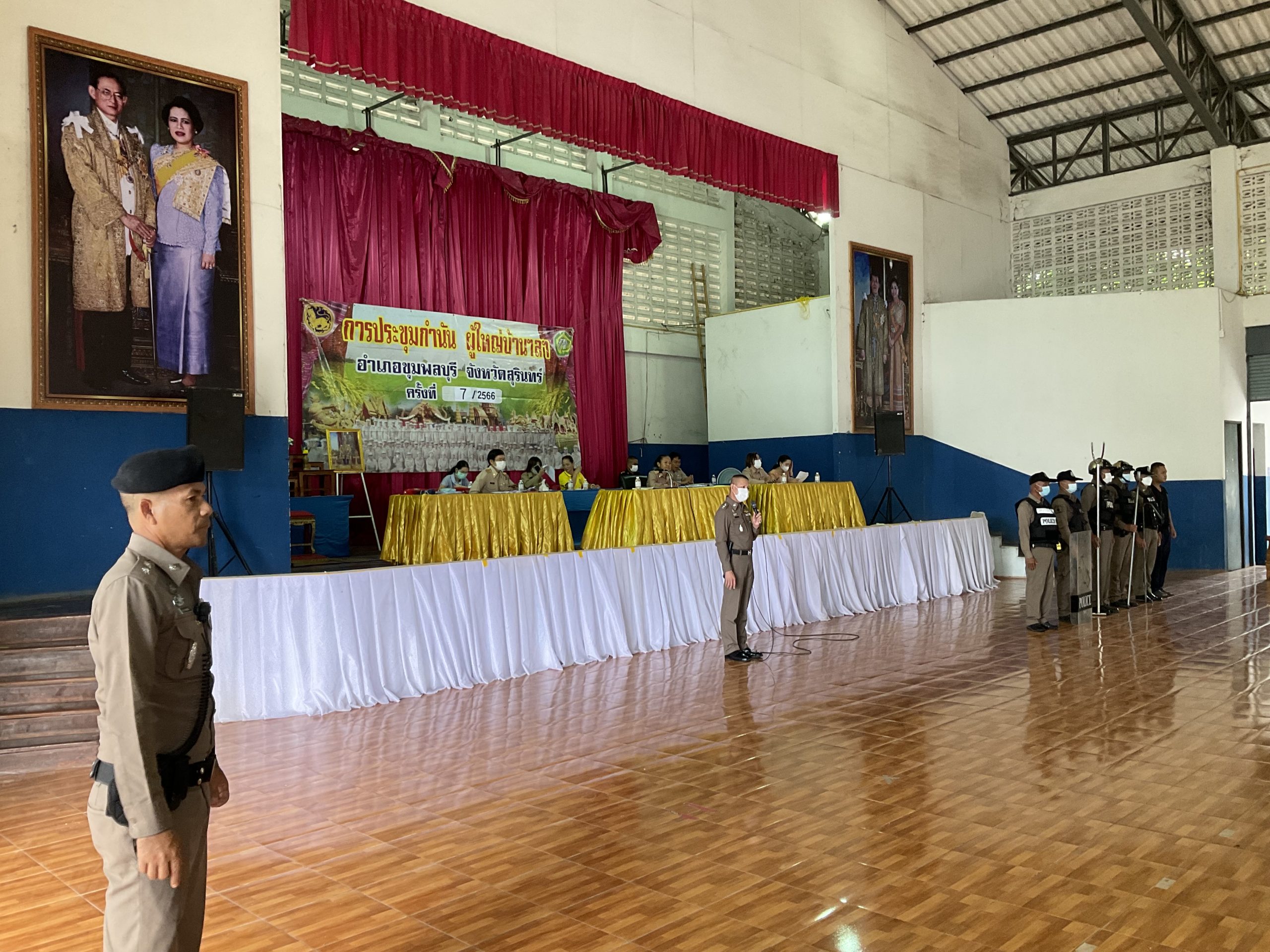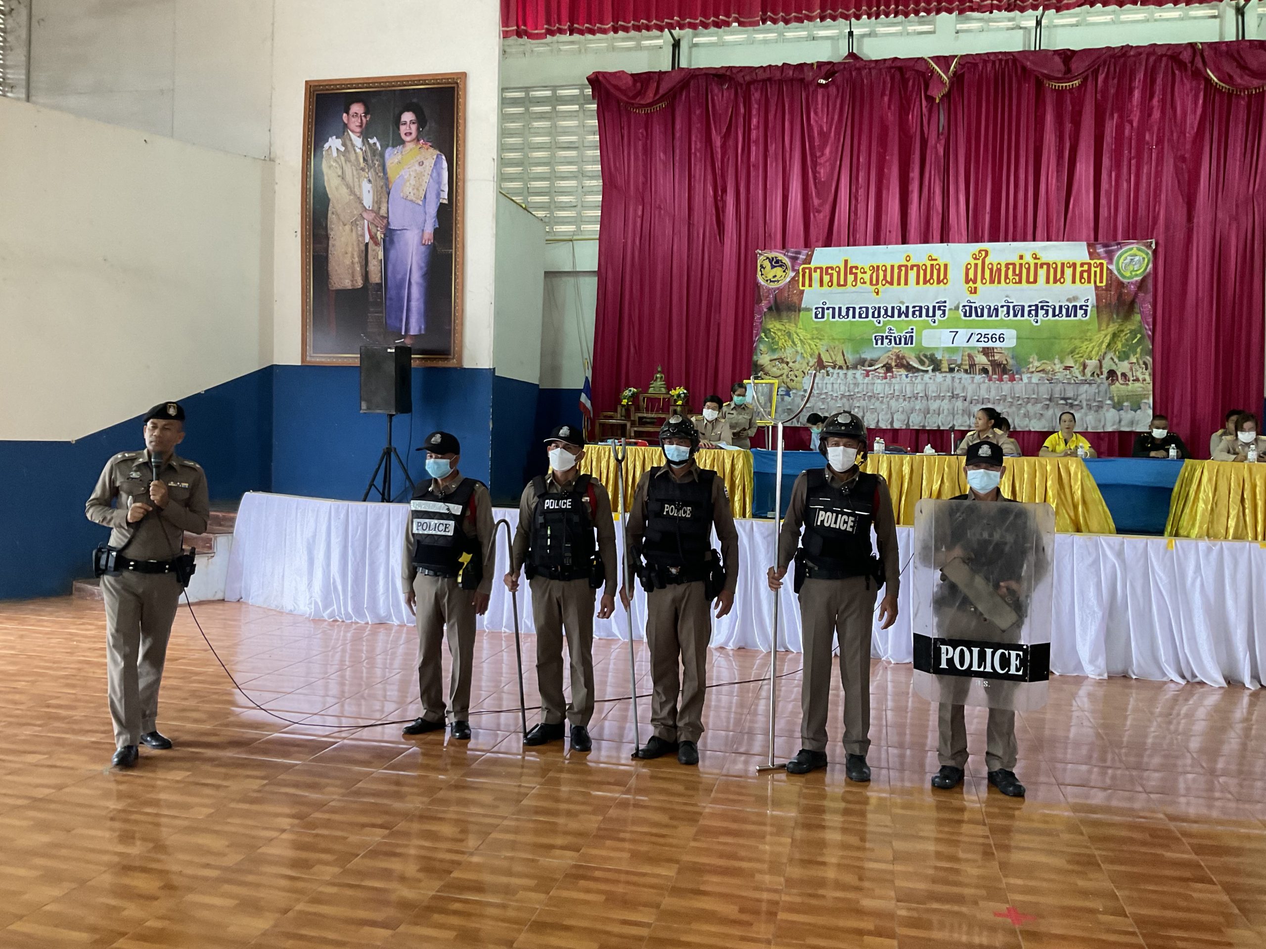 (4ก.ค.2566)เวลา 09.30 น. พ.ต.อ.วรพงศ์ มดทอง ผกก.สภ.ชุมพลบุรี เข้าร่วมการประชุมกำนันผู้ใหญ่บ้าน อำเภอชุมพลบุรี ครั้งที่ 7/2566 ณ หอประชุมอำเภอชุมพลบุรี และได้มอบหมายให้ พ.ต.ท.สุชน สุวรรณชาตรี สวป.สภ.ชุมพลบุรี พร้อม ว.30 นำกำลังไปสาธิตวิธีการระงับเหตุบุคคลคลุ้มคลั่ง อาละวาด โดยใช้ไม้ง่าม เบื้องต้น ให้กับกำนัน ผู้ใหญ่บ้าน อาสาสมัครประจำหมู่บ้าน