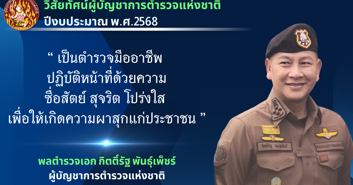 ผบ.ตร.มอบ 15 นโยบายการบริหารราชการ เน้นย้ำการเปลี่ยนแนวคิด (MINDSET) ปรับองค์กร เร่งปราบปรามอาชญากรรม เพิ่มขีดความสามารถสถานีตำรวจ ดูแลสวัสดิการตำรวจและครอบครัว สร้างความเชื่อมั่นและศรัทธาให้กับพี่น้องประชาชน