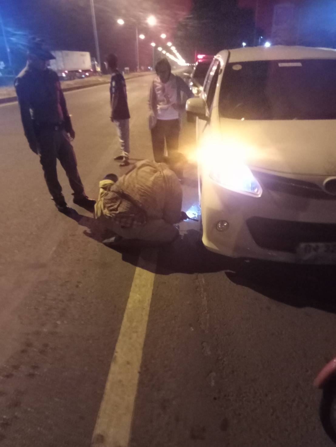 ประชาชนรถจักรยานยนต์น้ำมันหมด นำส่งปั้มน้ำมัน ปตท.กระเบื้อง