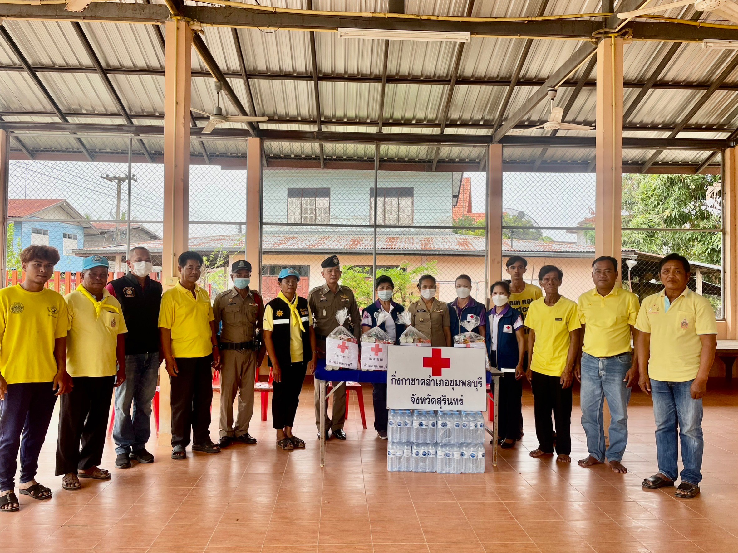 นางสาววันเพ็ญ หาญเสมอ นายกกิ่งกาชาดอำเภอชุมพลบุรี พร้อมด้วย สภ.ชุมพลบุรี สมาชิกกิ่งกาชาดอำเภอชุมพลบุ