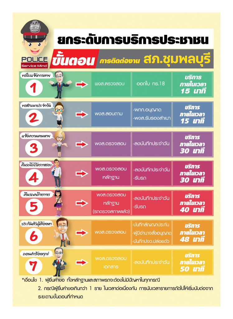 3.ประเภทงานให้บริการ /ขั้นตอนและมาตรฐานการให้บริการ ตามสายงานต่าง ๆ ในสถานีตำรวจภูธรชุมพลบุรี