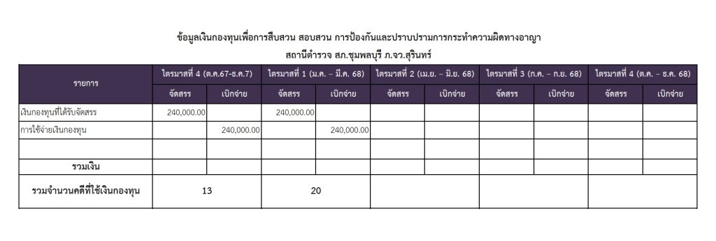 O13-ข้อมูลเงินกองทุนเพื่อการสืบสวน สอบสวน การป้องกันและปราบปรามการกระทำความผิดทางอาญา