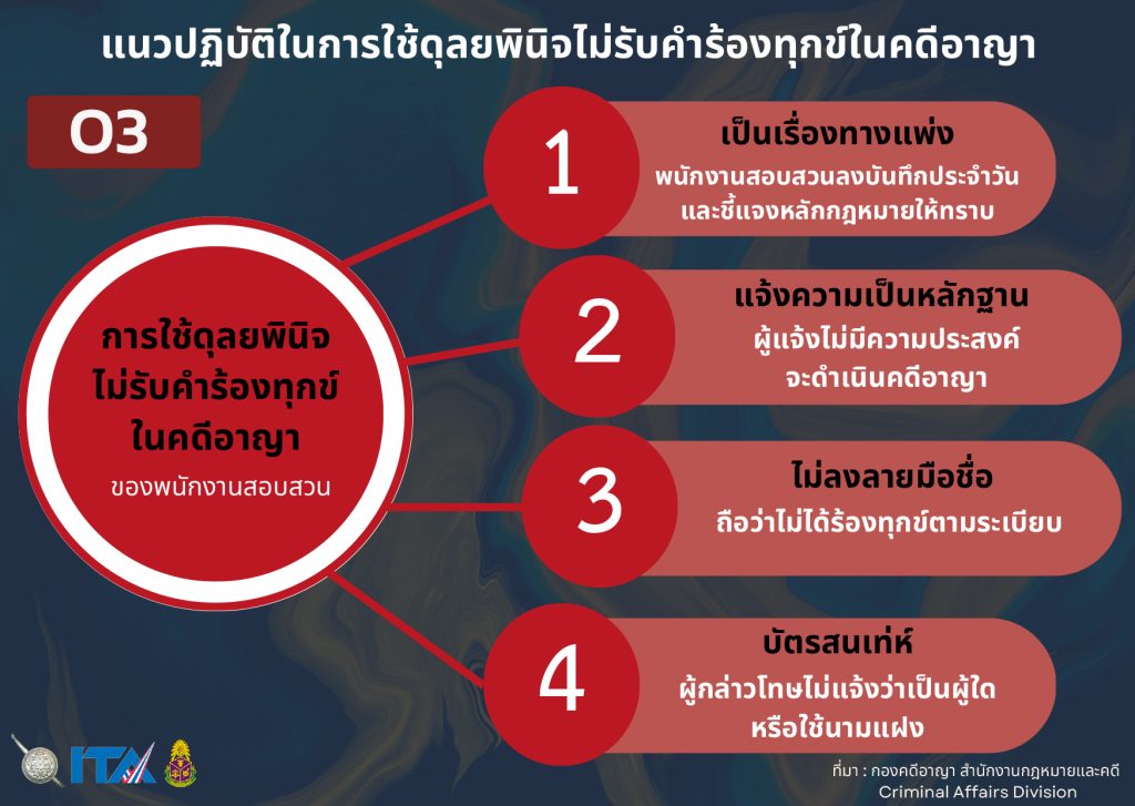 3. แนวปฏิบัติในการใช้ดุลยพินิจไม่รับคำร้องทุกข์คดีอาญา